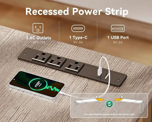 Power Outlets & Charging Ports Coleshome computer desk is equipped with 3 Power outlets & 1 USB charging port & 1 Type-C port for electronic devices, you can easily and conveniently charge your smart phone, gaming gear or Bluetooth devices when you are working or playing games.