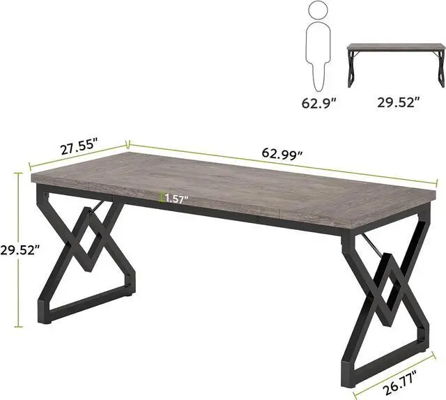 Measuring 63' ' L x 27.6 ' ' W x 29.5 ' ' H overall, our gray executive desk offers ample space for all your work essentials, including your laptop, books, office supplies, and paperwork. Plus, the generous leg room and ample space under the desk ensure maximum comfort