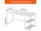 Adjustable Storage The adjustable open storage shelf of the office desk can be placed on the left or right side. The storage shelf can be adjusted in three sections to hold the computer mainframe and books.