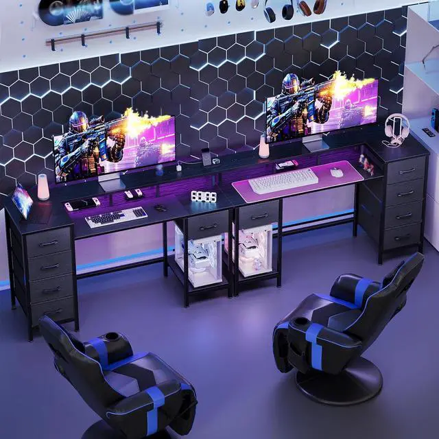 Table with LED Lights: Gaming table with built-in RGB LED light strips to adjust the atmosphere for a better gaming experience. You can choose different modes and colours to decorate the room according to different use scenarios work or games.