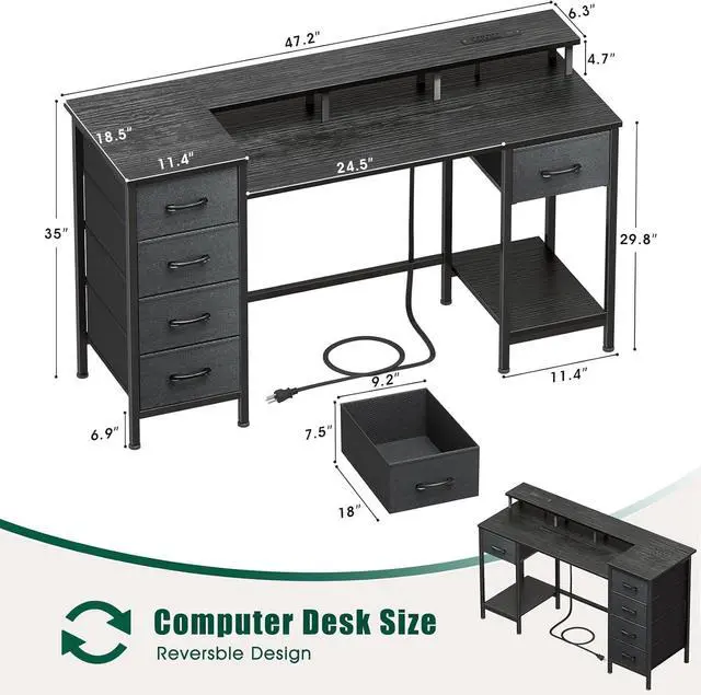 Reversible Multiple Use Desk: Create a multifunctional workstation that can be used as a writing or study desk as well as for gaming. Full monitor stand reserves more space on your desktop. Raise your screen to eye level and take the strain off your neck and back. You can try different drawer mounting orientations (left or right, above or below) to customise the storage space.