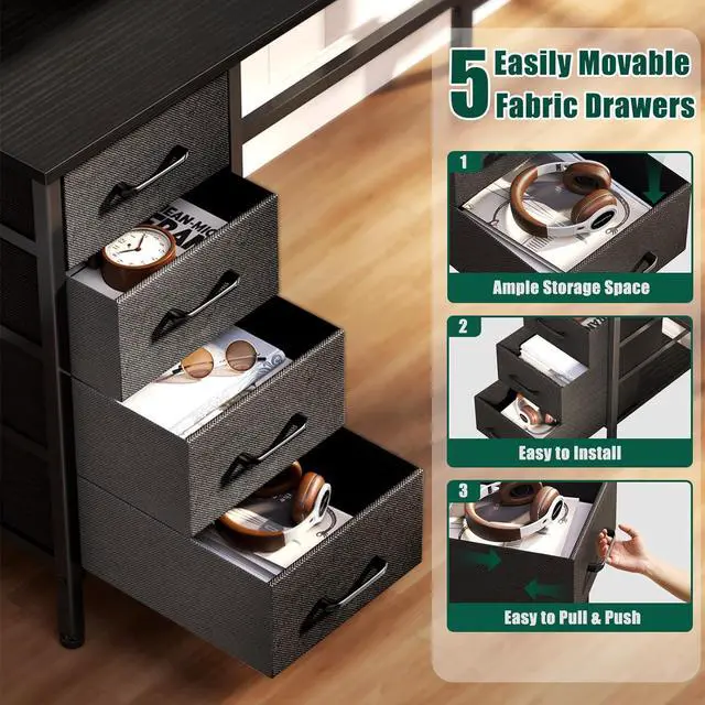 Sturdy & Stable Structure: Equipped with adjustable feet to help stabilize on uneven floors or carpets. The corner desk is made of high-quality particleboard and a durable metal frame and a load capacity of 180 pounds. Drawers made of high-quality non-woven fabric that is lightweight and breathable.