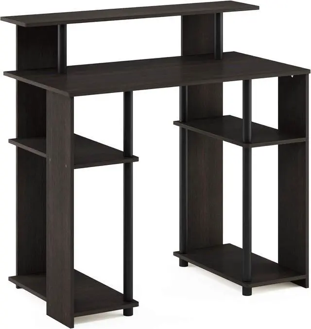 Simple stylish design features shelves on both sides for CPU and books, elevated shelf for a compact printer or other stationery decor