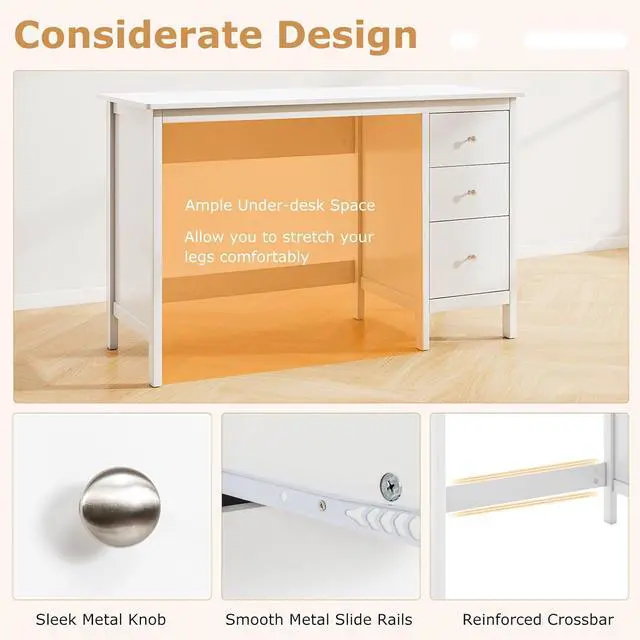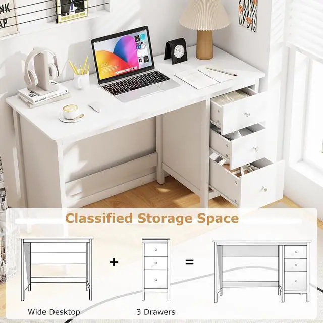 Practical Storage Drawers: The laptop desk features 3 deep drawers that keep essentials neatly organized and easily accessible, such as books and stationery. Just feel free to grab the handles to pull out the drawers and grope for what you want.