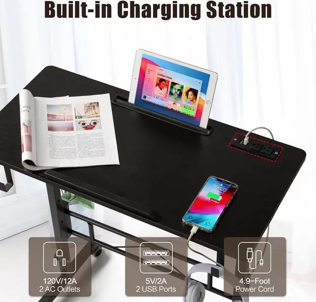 Ergonomic Use: The desk' s height can be easily adjusted from 29.1 inch to 44.9 inch, allowing for both sitting and standing positions. Its ergonomic design promotes better posture and reduces strain on your back and neck, ensuring a healthier work setup