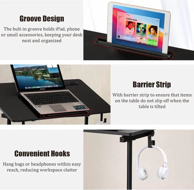Practical Add-Ons: Keep your workspace organized with the included tablet slot, and two hooks for hanging headphones or bags. These convenient extras help create a clutter-free setup, so you can focus on your work without distractions. A barrier strip prevents items from sliding off when the desktop is tilted, ensuring your essentials stay secure