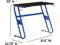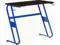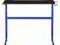 Smooth laminate top, blue powder coated metal frame, screw leveling floor glides, detachable cup holder and headset hook