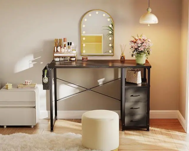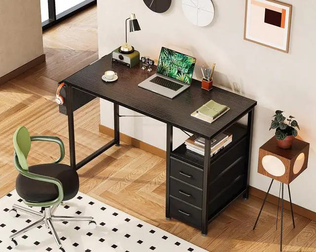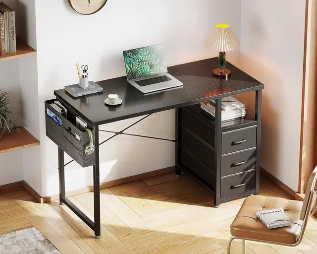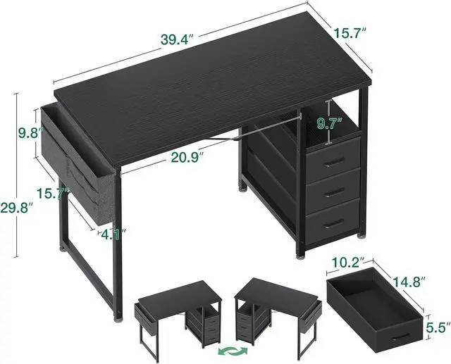 Desk with Fabric Drawersthe home office desk is designed with 3 fabric drawers that provide enough storage space and ensure spacious work surface at the desktop, keeping your office or study supplies in order and dust-free with Cloth Storage Bag