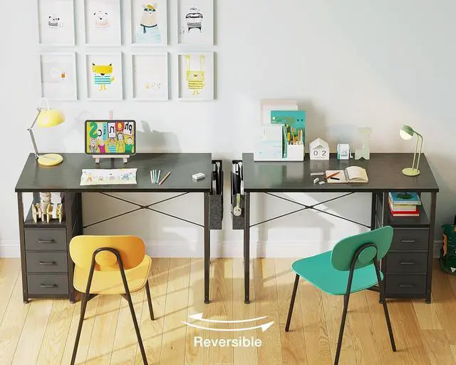 Reversible Design the modular design of our small office desk allows for you to mount the drawer on either the left or right side, so you can fit this 40 inch desk to your needs in any room. Our elegant, minimalist design fits to living rooms, bedrooms, home offices, dorms, kidsrooms and more.