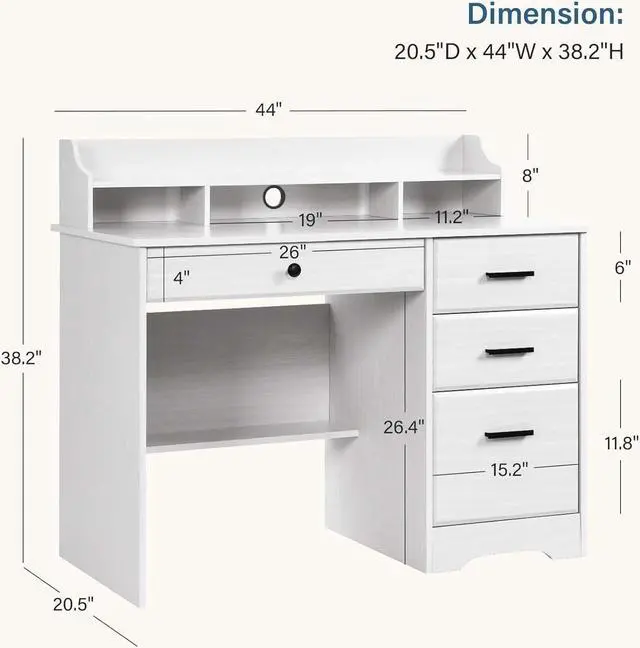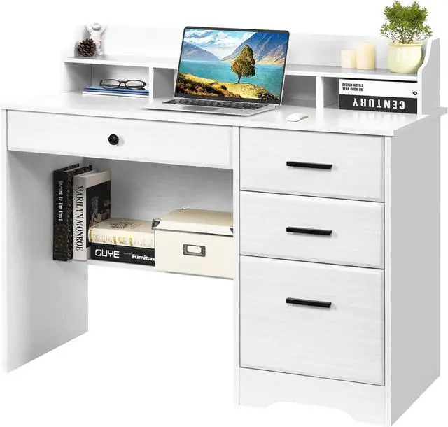 Sturdy & Secure Construction - Our desk with drawers is made of high quality thickened wood and stable construction, so the computer desk with hutch is load-bearing and can hold up to 130 pounds