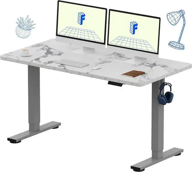 FLEXISPOT EN1 One-Piece Standing Desk 55 x 28 Inches Height Adjustable Electric Desk (Silver Frame + Marble Grey Top, 2 Packages)