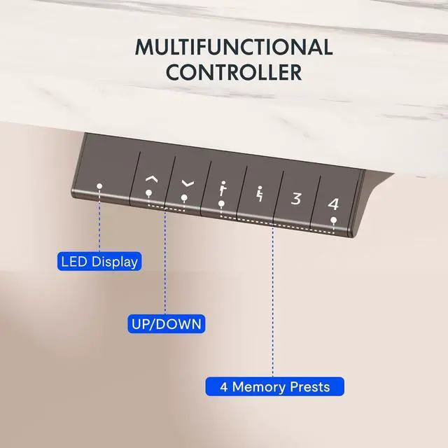 • 4 MEMORY PRESETS: Easily store and recall different height settings with our multifunctional memory system. Effortlessly switch between sitting and standing to reduce the risk of health issues like back and neck pain caused by prolonged sitting.