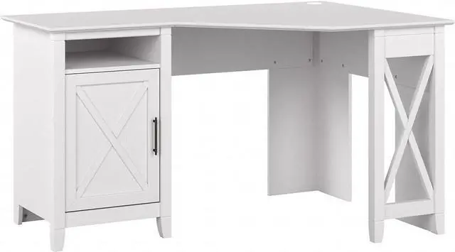 BEAUTIFULLY CRAFTED: This breezy corner workstation desk conveys a cottage style with X pattern accents to fit in a variety of living and workspaces. Our corner computer desk for small spaces also presents a sturdy and attractive post-leg design.