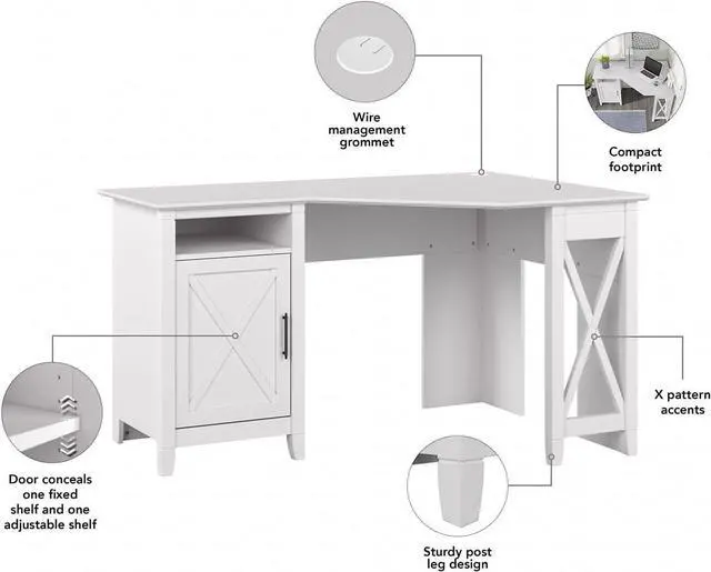 NEAT FEATURES: This corner desk with storage takes care of messy computer and phone cables for you with convenient wire management grommets. This corner office desk also includes hardware for easy anchoring to a wall for maximum stability and safety.