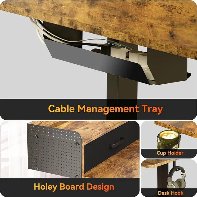 DIY Ideal Computer Workstation: WALKINGDESK designed unique features for L-shape desk users, such as DIY board, which not only allows you to dress up the electric desk, but also prevents things from falling and breaking. And the delicate organizer leather pouch is suitable for putting paintings, books and so on. The cable management tray and cup holder are also thoughtful ideas, make your computer table neat and convenient.