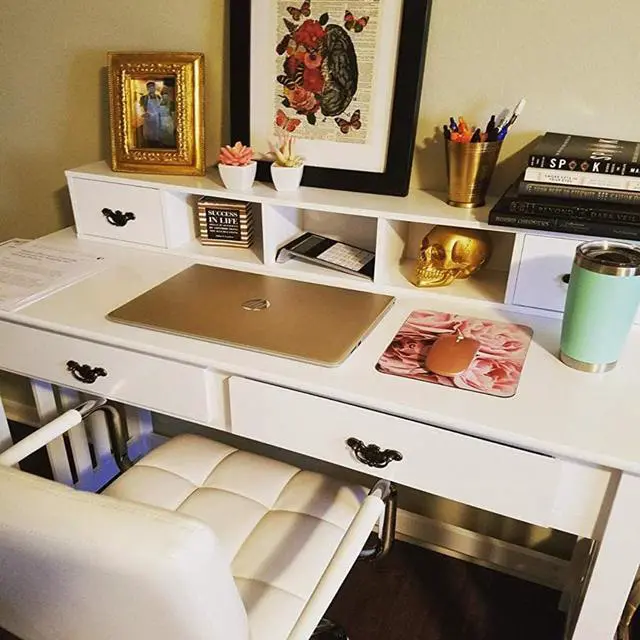 Drawer]: There are 2 big drawers and a hutch with 2 cute removable drawers and 3 storage rooms which provide you with plenty of added room to well classify accessories and organize your writing desk into a neat one.