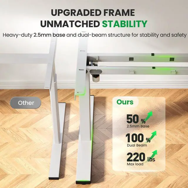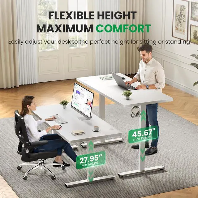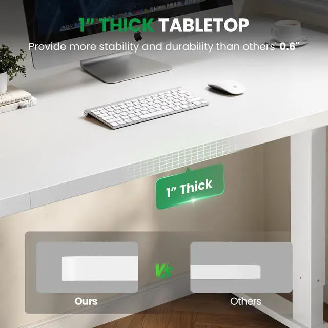 Designed for both reliability and style, this 60"-71" standing desk pairs a robust metal foundation with an ultra-thick desktop to create a workspace that feels solid and supportive no matter how you use it. The wide, treated surface resists daily wear and tear, keeping your setup looking clean and professional over time. Its minimalist silhouette blends seamlessly into home offices, study corners, or gaming rooms, offering the flexibility to match different lifestyles and environments. With thoughtful construction that simplifies installation and a full year of warranty protection, this desk delivers long-term comfort and confidence from day one.
