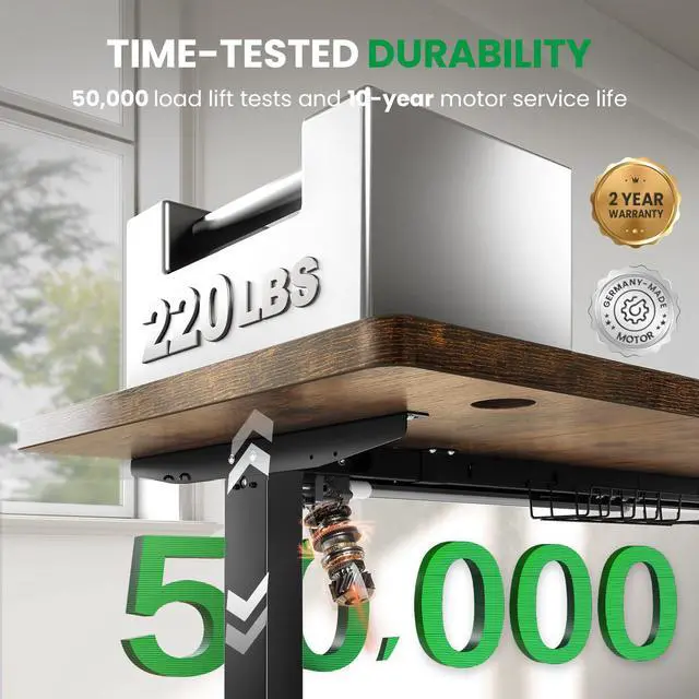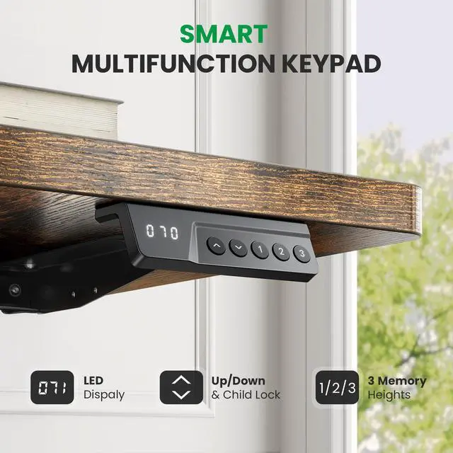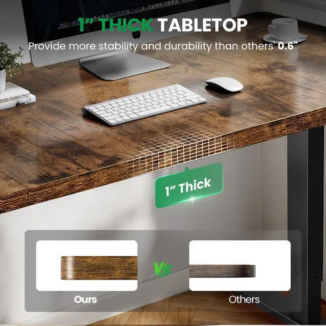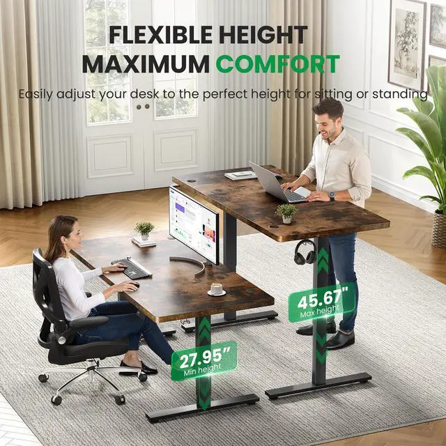 Designed for both reliability and style, this 60"-71" standing desk pairs a robust metal foundation with an ultra-thick desktop to create a workspace that feels solid and supportive no matter how you use it. The wide, treated surface resists daily wear and tear, keeping your setup looking clean and professional over time. Its minimalist silhouette blends seamlessly into home offices, study corners, or gaming rooms, offering the flexibility to match different lifestyles and environments. With thoughtful construction that simplifies installation and a full year of warranty protection, this desk delivers long-term comfort and confidence from day one.