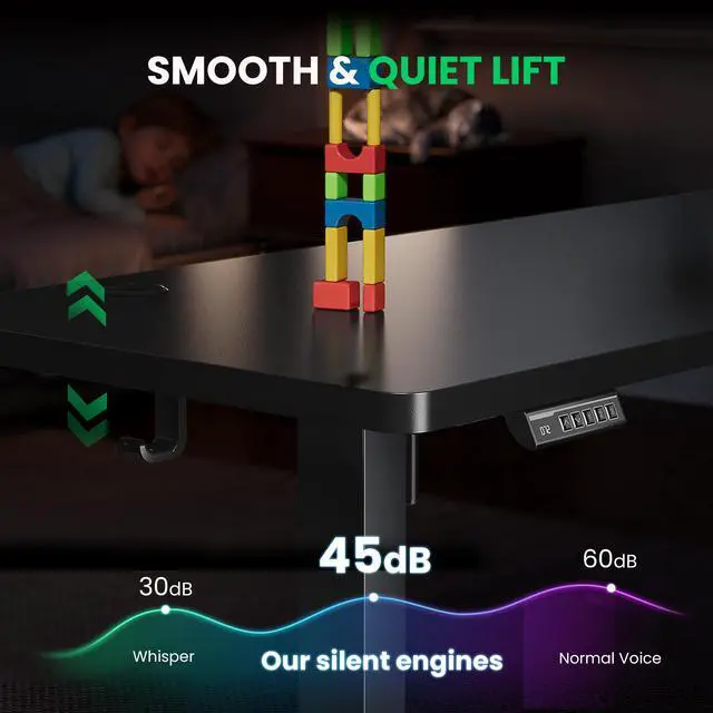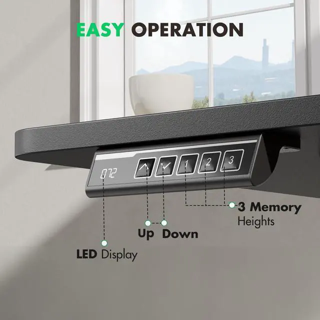 Ergonomics for Elite Performance Fatigue is the enemy of performance. Our German-engineered motor allows you to seamlessly switch from a seated position to a standing "active" mode, keeping your blood flowing and your focus sharp during long-haul gaming marathons. The three memory presets mean you never have to hunt for your "sweet spot" againjust one tap, and the desk moves into position.