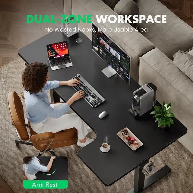 Dominate Your Setup with Precision Engineering Don't let a wobbly desk be the reason you miss a shot. This 63" L-Shaped Electric Standing Gaming Desk is built for enthusiasts who demand structural integrity and ergonomic flexibility. By utilizing a dual-beam structural design, we've eliminated the "desk-sway" common in corner setups, giving you a rock-solid foundation for your mouse, keyboard, and monitors.
