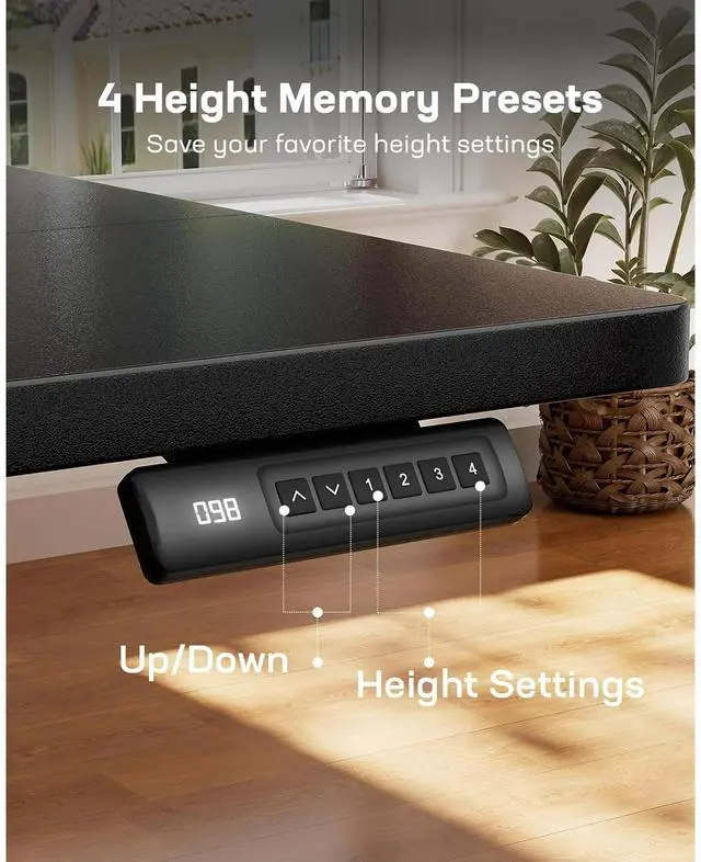 Memory Presets: Features 4 programmable memory buttons to save preferred heights for different tasks or users, enhancing productivity and promoting better posture.