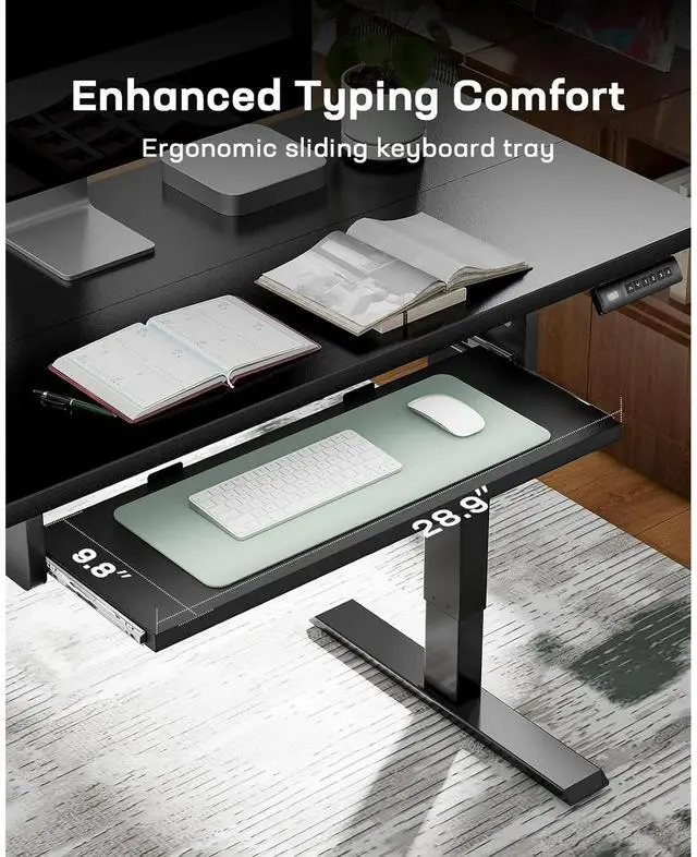 Ergonomic Keyboard Tray: Comes equipped with a smooth-sliding keyboard tray (28.9 x 9.8) designed for ergonomic comfort, reducing wrist strain and optimizing typing posture.