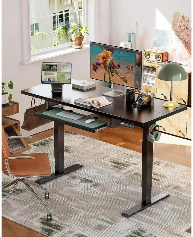 CHITOOMA Electric Standing Desk with Keyboard Tray, 48" x 24" Height Adjustable Sit Stand up Desk with Headphone Hook & 4 Height Memory Pre-Set for Home Office, Black