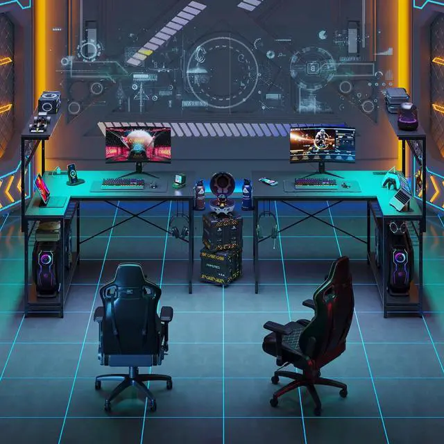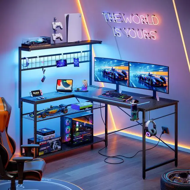 Ample Workspace: 51-inch L-shaped gaming desk with a top cover provides extensive workspace and versatile 4-tier storage for efficient organization and enhanced productivity.