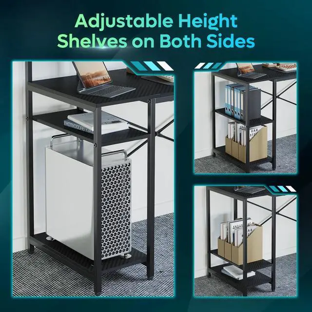 • Adjustable Storage: Includes 2 side shelves with 3 height levels each, perfect for storing computer towers, gaming consoles, or collectibles.