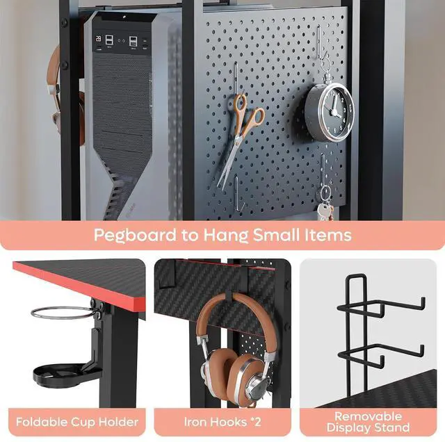 4. Practical Features: Equipped with a USB port, foldable cup holder, two iron hooks, and a removable display stand for added convenience.