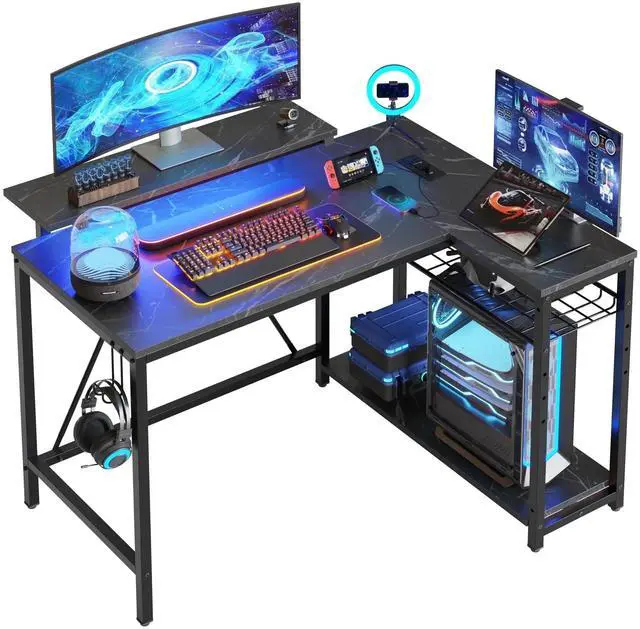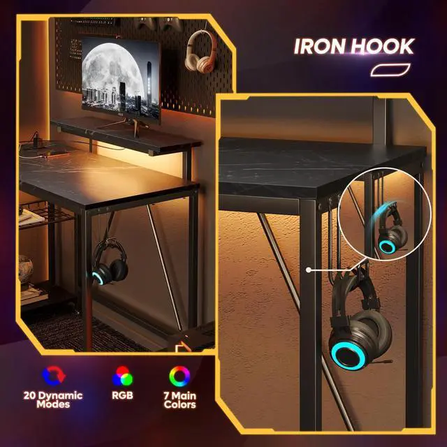 LED Light Strips: Equipped with RGB light strips featuring 7 basic colors and 20 dynamic modes, this desk creates an immersive gaming or office environment.