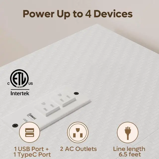 Convenient Charging: Bestier L-shaped gaming desk includes 2 AC sockets, 1 USB port, and 1 Type-C interface, allowing easy charging of various devices with a rated power of 1500W.
