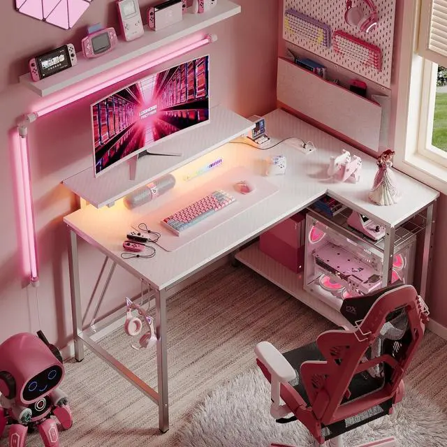 LED Light Strips: Equipped with RGB light strips featuring 7 basic colors and 20 dynamic modes, this desk creates an immersive gaming or office environment.