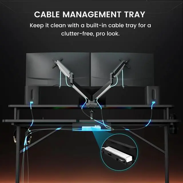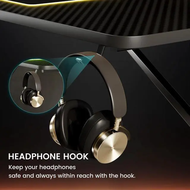 Organizational Features: Includes functional accessories such as a cup holder, headphone hook, and a desk-on-desk design to streamline your space.