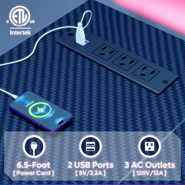 • Integrated Power: Features 3 AC outlets and 2 USB charging ports, allowing simultaneous power for up to five devices like monitors, phones, or gaming gear.