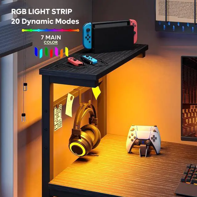 Gamer-friendly Design: The desk features an LED light with 7 color moods and 20 dynamic settings, a headphone hook, and a magazine bag for a multi-functional workstation.