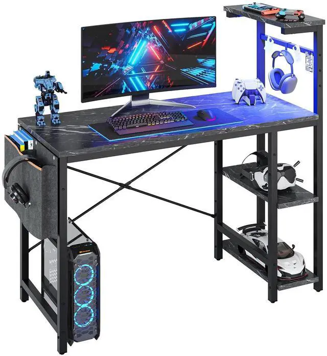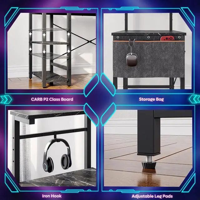 Gamer-friendly Design: The desk features an LED light with 7 color moods and 20 dynamic settings, a headphone hook, and a magazine bag for a multi-functional workstation.