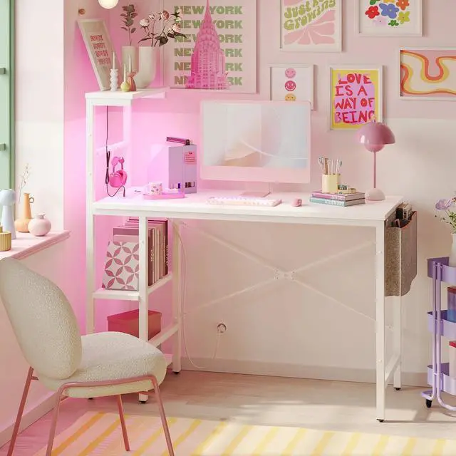 Gamer-friendly Design: The desk features an LED light with 7 color moods and 20 dynamic settings, a headphone hook, and a magazine bag for a multi-functional workstation.