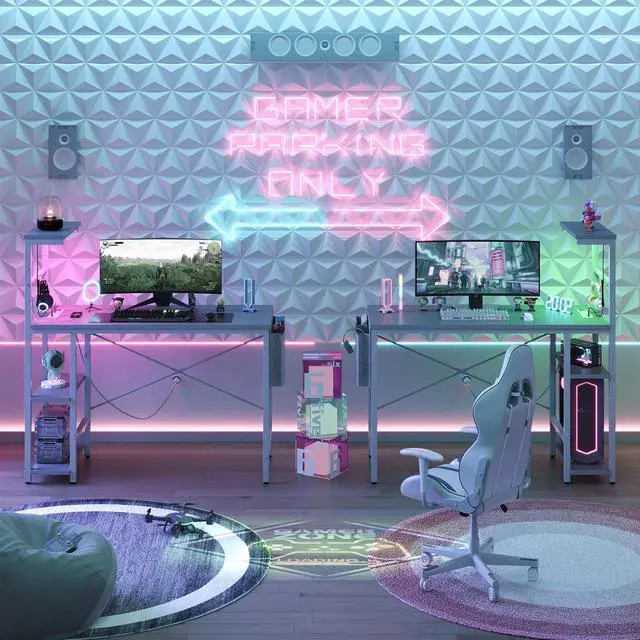 • Gamer-friendly Design: The desk features an LED light with 7 color moods and 20 dynamic settings, a headphone hook, and a magazine bag for a multi-functional workstation.