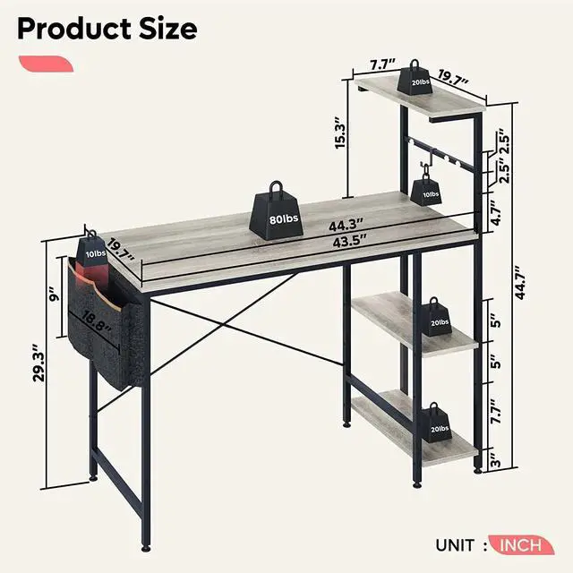 • Gamer-friendly Design: The desk features an LED light with 7 color moods and 20 dynamic settings, a headphone hook, and a magazine bag for a multi-functional workstation.