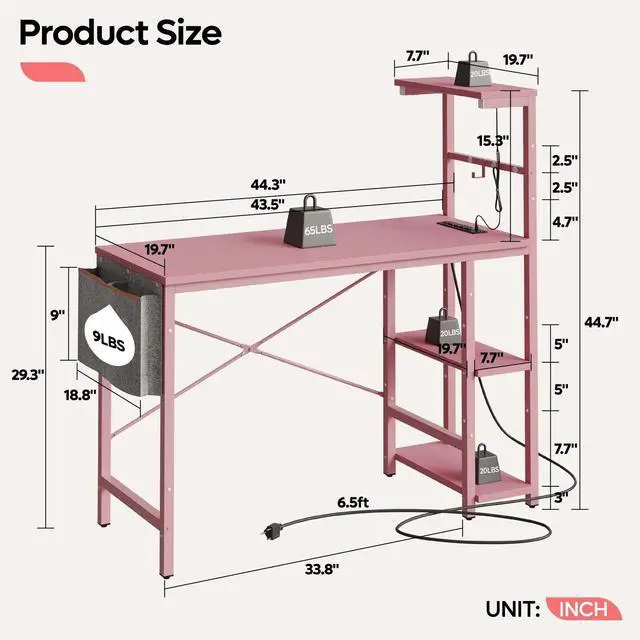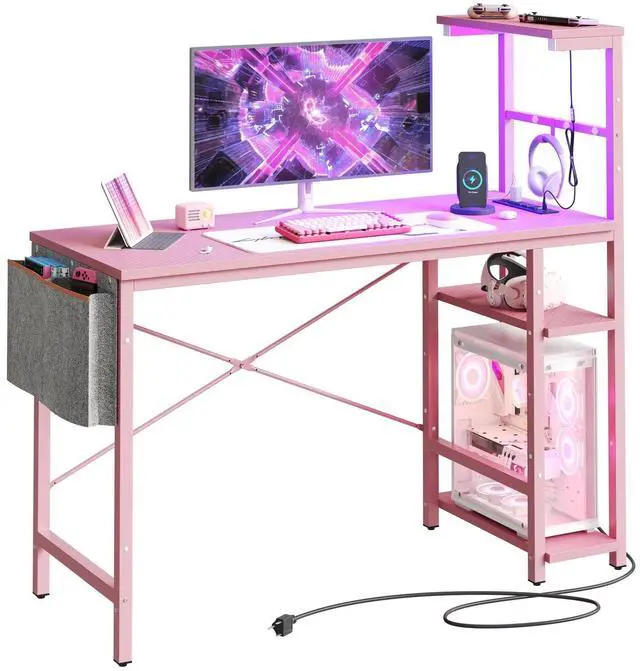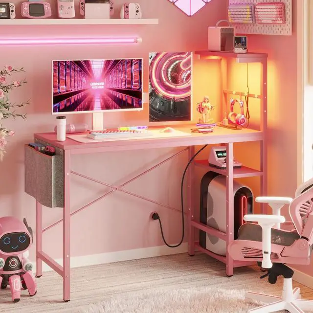 Gamer-friendly Design: The desk features an LED light with 7 color moods and 20 dynamic settings, a headphone hook, and a magazine bag for a multi-functional workstation.
