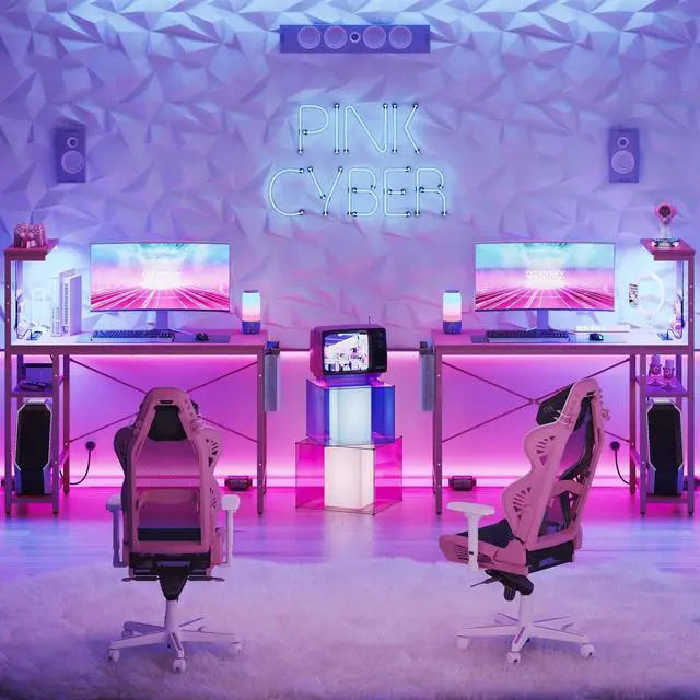 Material and Style: Made from CARB P2 wood and steel, the desk features an industrial and modern design in black color with RGB LED lights.