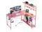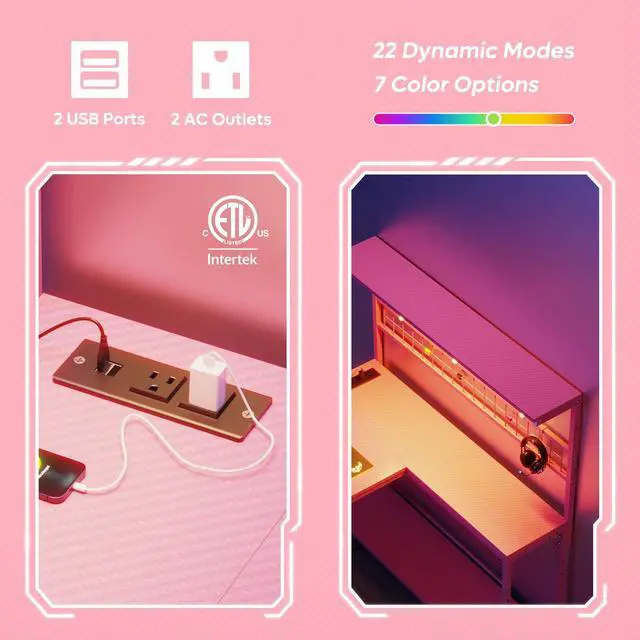 Bestier 51 L Shaped Gaming Desk with Power Outlets, LED Workstation with 4 Tiers Shelves for Home Office, Gamer Reversible Table with Hooks and Cup Holder Carbon Fiber Pink