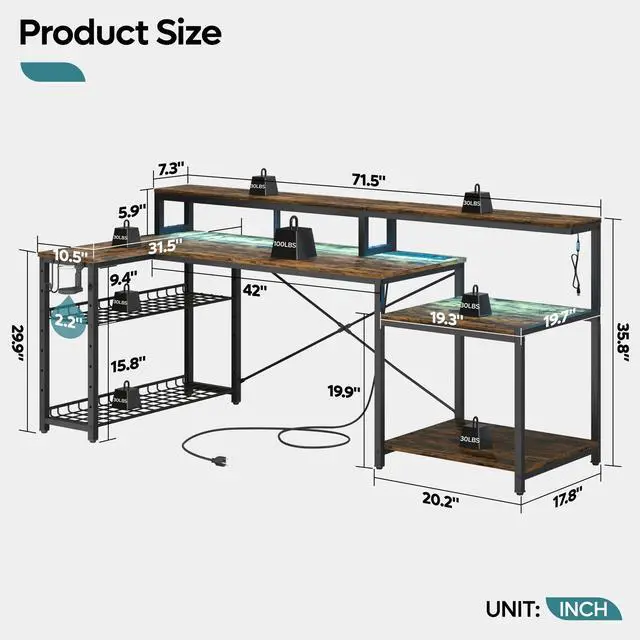 • Spacious Design: The Bestier L-Shaped Desk measures 71.5"L x 35.8"H x 31.5"W x 19.7"D, providing ample space for multiple monitors or paperwork.