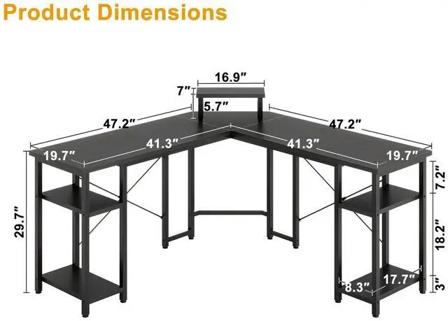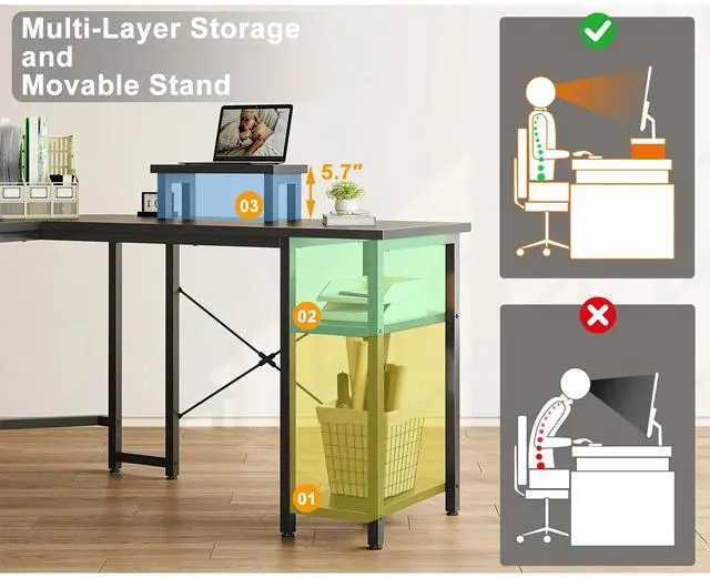 Versatile L-Shaped Computer DeskFlexible layout allows you to fully utilize every corner. The GUNAITO L-Shaped Corner Desk seamlessly blends practicality and aesthetics. It can be used as a decorative display or a functional workspace. Its corner design allows you to effectively utilize limited spacewhether it's a focused home office, a vibrant game room, or a creative studio. It helps you create a neat, efficient, and integrated workspace, perfect for both work and play.