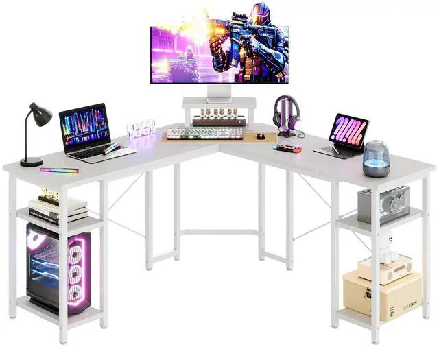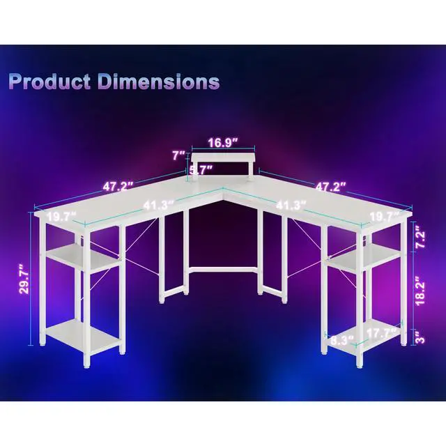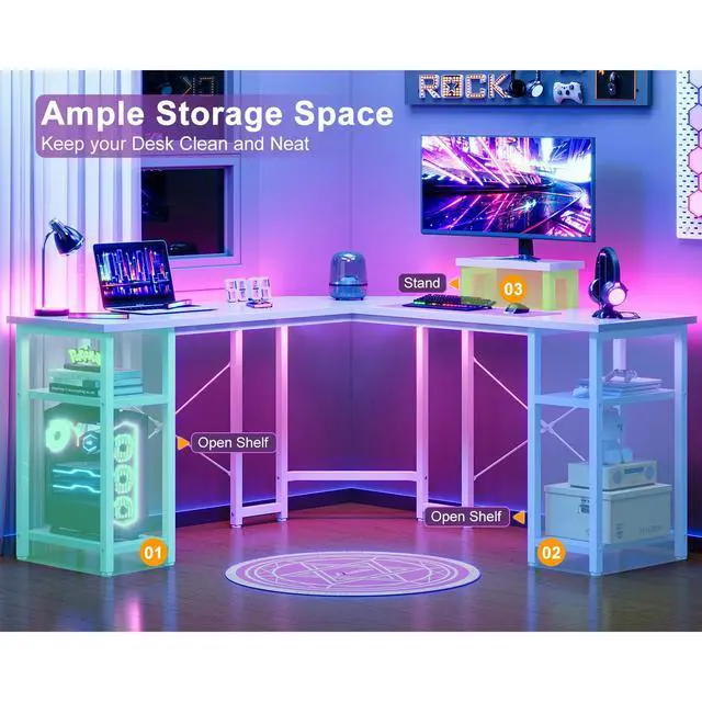 Versatile L-Shaped Computer DeskFlexible layout allows you to fully utilize every corner. The GUNAITO L-Shaped Corner Desk seamlessly blends practicality and aesthetics. It can be used as a decorative display or a functional workspace. Its corner design allows you to effectively utilize limited spacewhether it's a focused home office, a vibrant game room, or a creative studio. It helps you create a neat, efficient, and integrated workspace, perfect for both work and play.