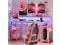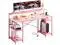 Bestier 55" Gaming Desk with LED Light & Monitor Stand Computer Desk Corner Desk for Home Office Pink Carbon Fiber 3 Outlets 2 USBs