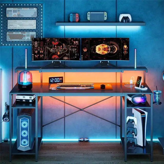 • Adjustable Storage: Includes 2 side shelves with 3 height levels each, perfect for storing computer towers, gaming consoles, or collectibles.