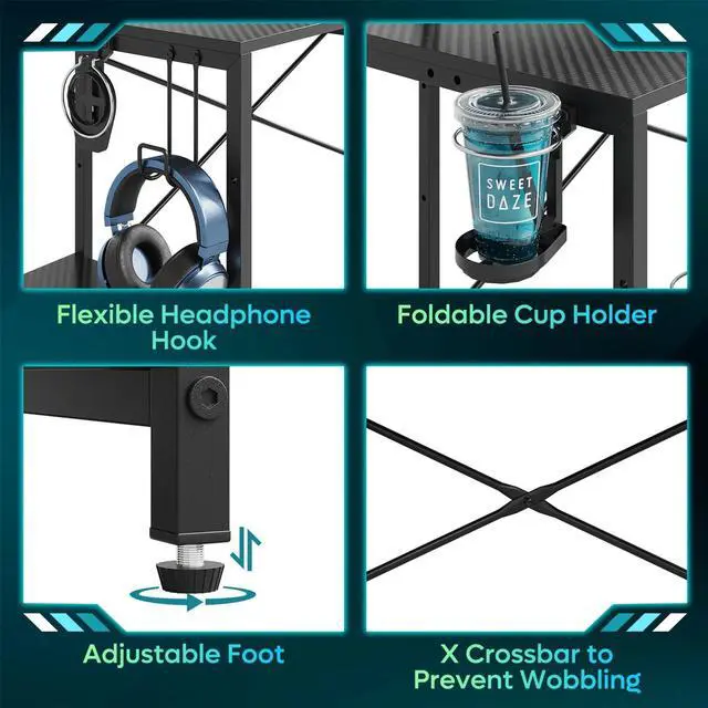 3. Adjustable Storage: Includes 2 side shelves with 3 height levels each, perfect for storing computer towers, gaming consoles, or collectibles.