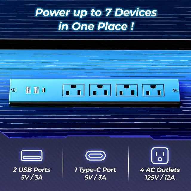 Charging Made Easy: With 4 standard plug outlets and 2 USB ports on the gaming pc desk's desktop, you can easily power up your devices and stay connected without the clutter of wires. Hassle-free charging experience with our computer gaming desk